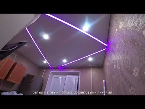 Белый матовый потолок со световыми линиями на ул. Кауля